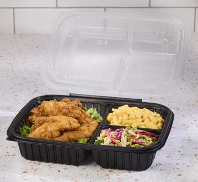 Quality packaging that’s just right for take-out, our Hot Collection maintains stability and structure under the hottest conditions. Sabert’s hinged take-out containers have perforated lids that tear away easily for table-ready dining on-the-go. Dual, easy-open tabs make handling simple while locking lids prevent leaks. Reheatable and refrigerator friendly, these containers offer convenience and style.