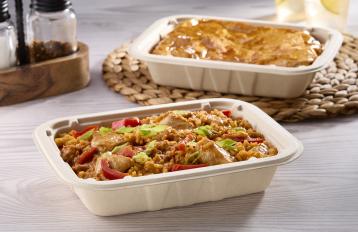 Sabert’s environmentally friendly Green Collection includes a full line of molded fiber pulp compostable bases with recyclable plastic lids, offering everything from soup bowls and containers to catering platters and plates. Sabert has made a commitment to not intentionally add PFAS to our products. Pulp Plus® is enhanced with improved moisture resistance, and longer shelf life in refrigerated applications. Made in USA