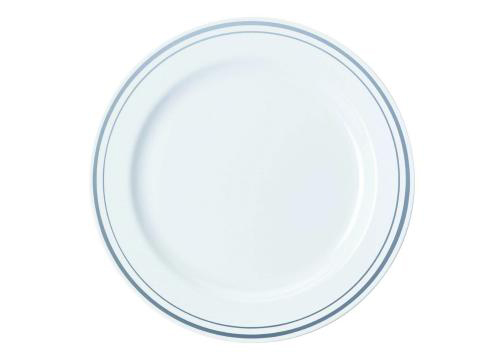 White 7.5” Round Plate with Silver Decorative Rings